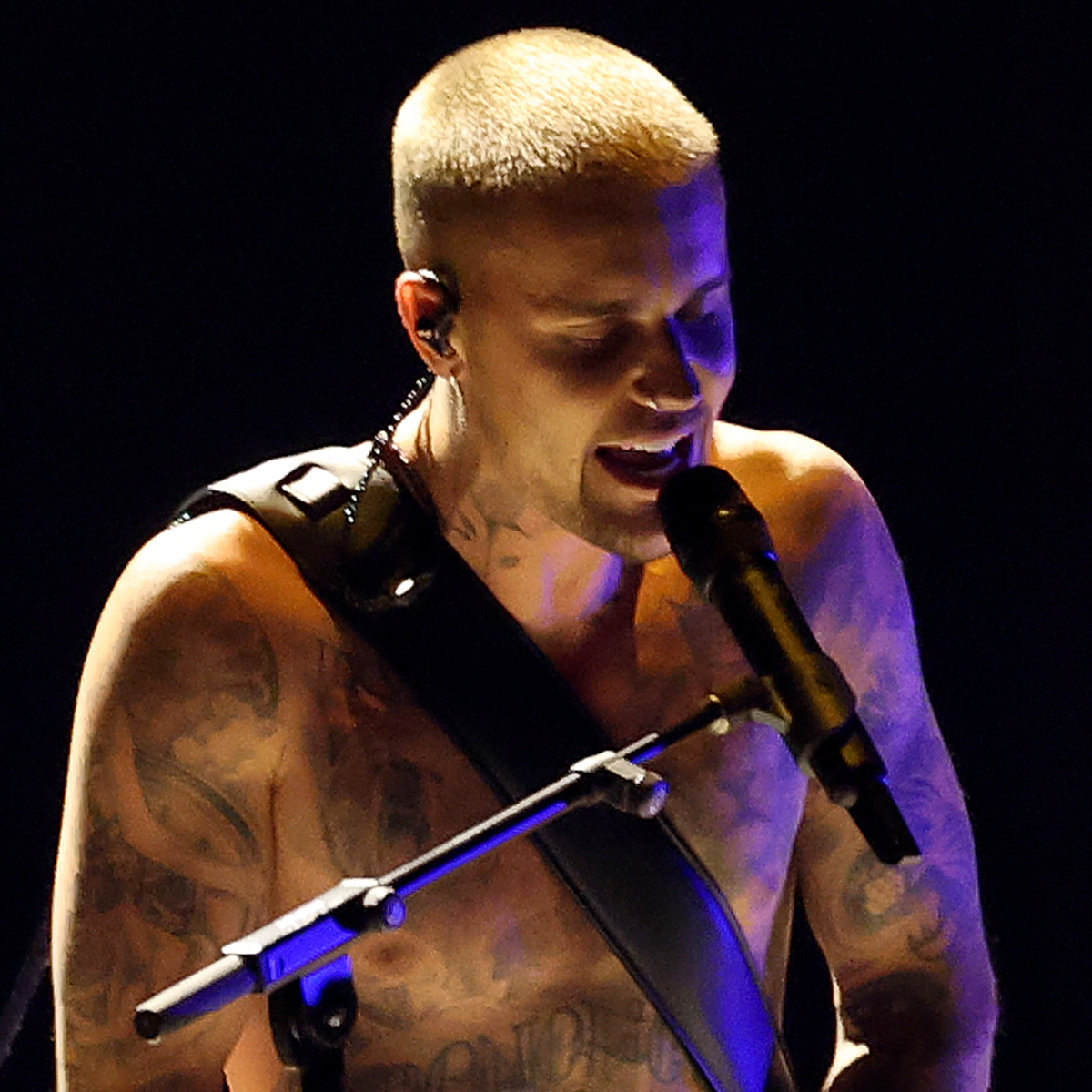 Mientras cantaba “YUKON” frente al micrófono, Justin se quedó sin camisa, usando solo un par de boxers grises y calcetines a juego, con sus abdominales a la vista para la actuación íntima.